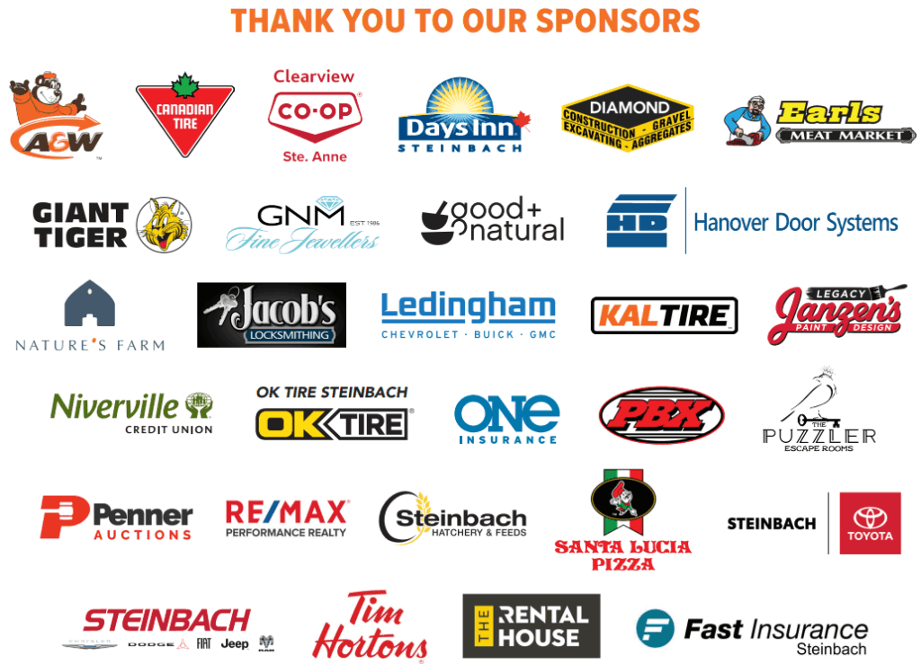 Steinbach Family Resource Centre and all event sponsors are not liable for any injury or damage to personal property as a result of any individual’s participation in this event. All participation is voluntary. There is no cost to participate in or to be entered into the prize draws.