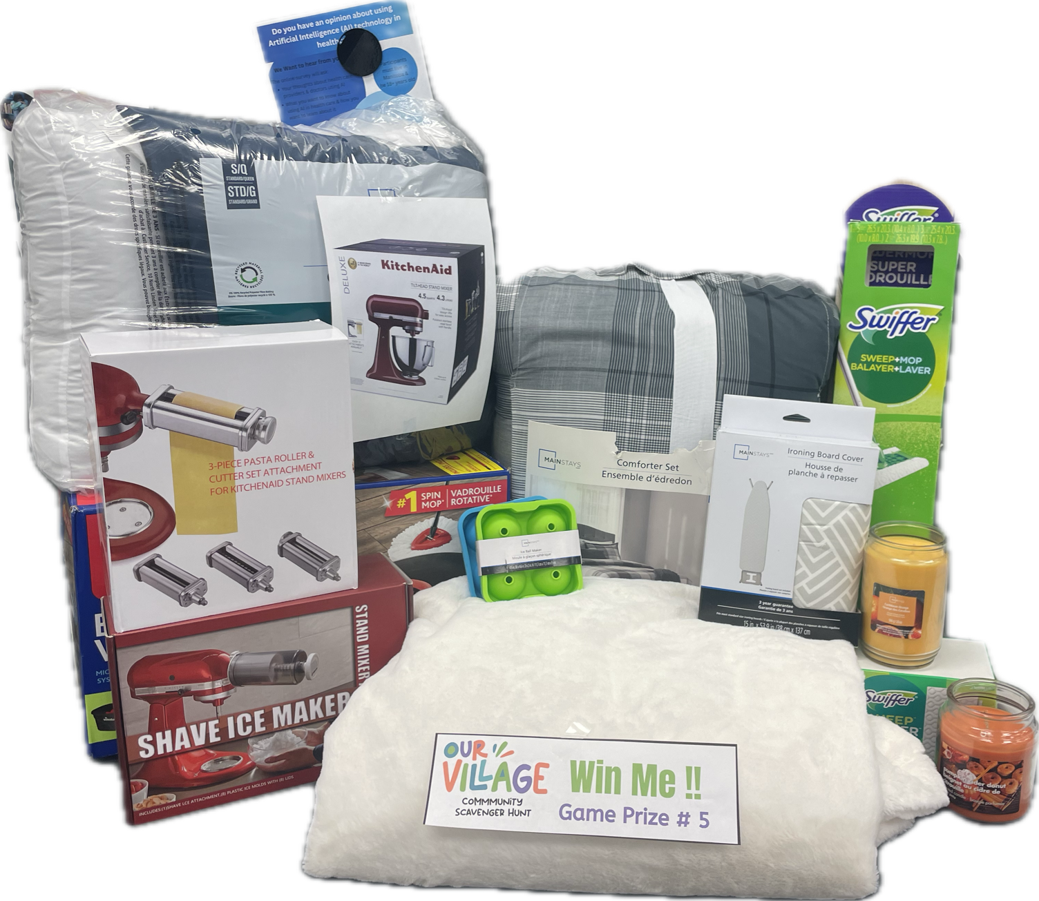 This kitchen package features a KitchenAid mixer for all your baking needs plus Swiffers to keep your space sparkling clean. A perfect mix of fun and functional—cook, create, and clean with ease!